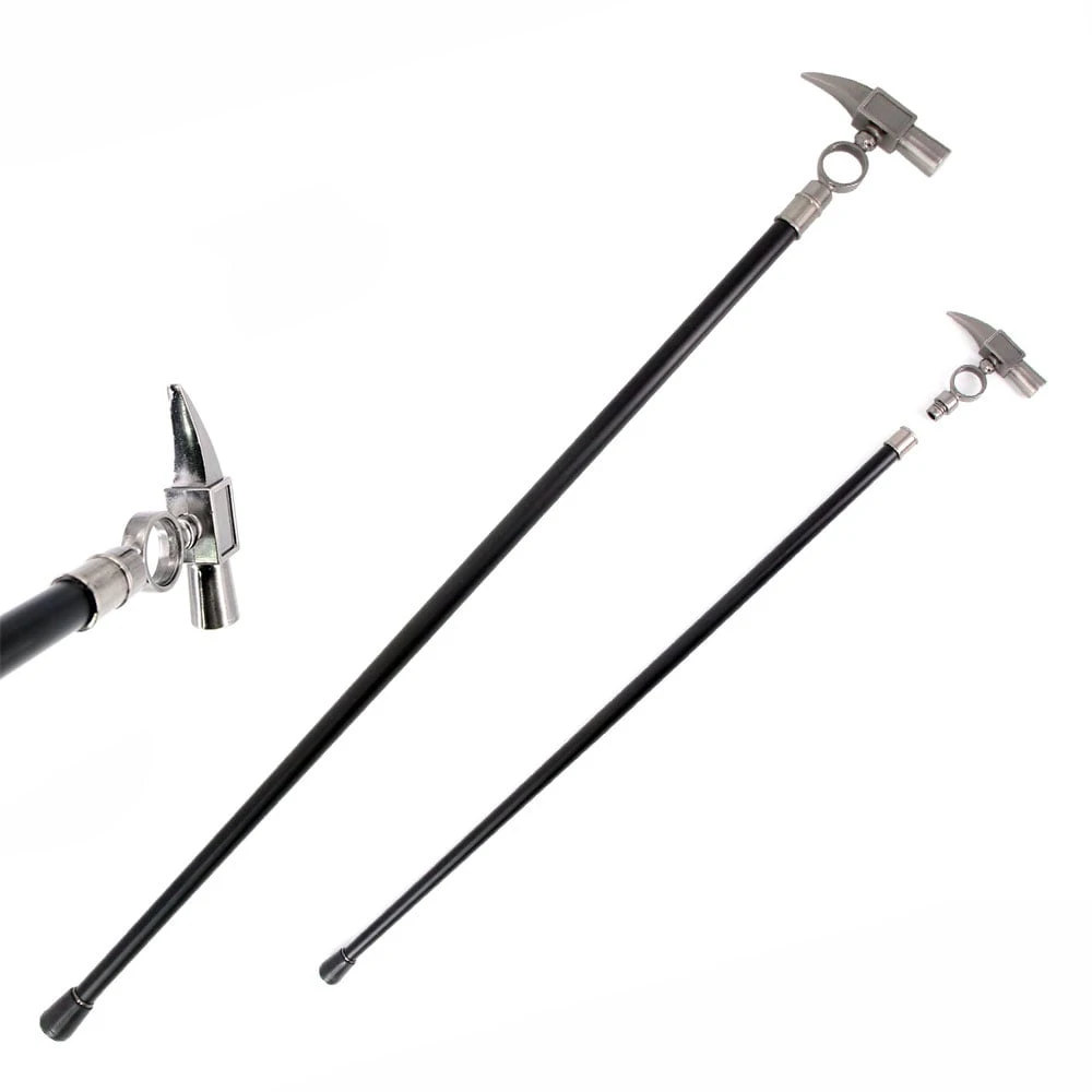 Knock on any door in style with a Hammer Style Walking Stick. The handle of this cane can acts as a hammer. The metal of the hammer that acts as the cane handle pairs well with the dark color of the cane, giving the Walking Stick a stylishly elegant appearance. The bottom of this cane features a rubber stopper to help balance and prevent slipping. This cane is strictly a fashion accessory for your costuming needs and should not be used as a medical device. This medieval looking Walking Stick is perfect for cosplay, decoration, and collections!