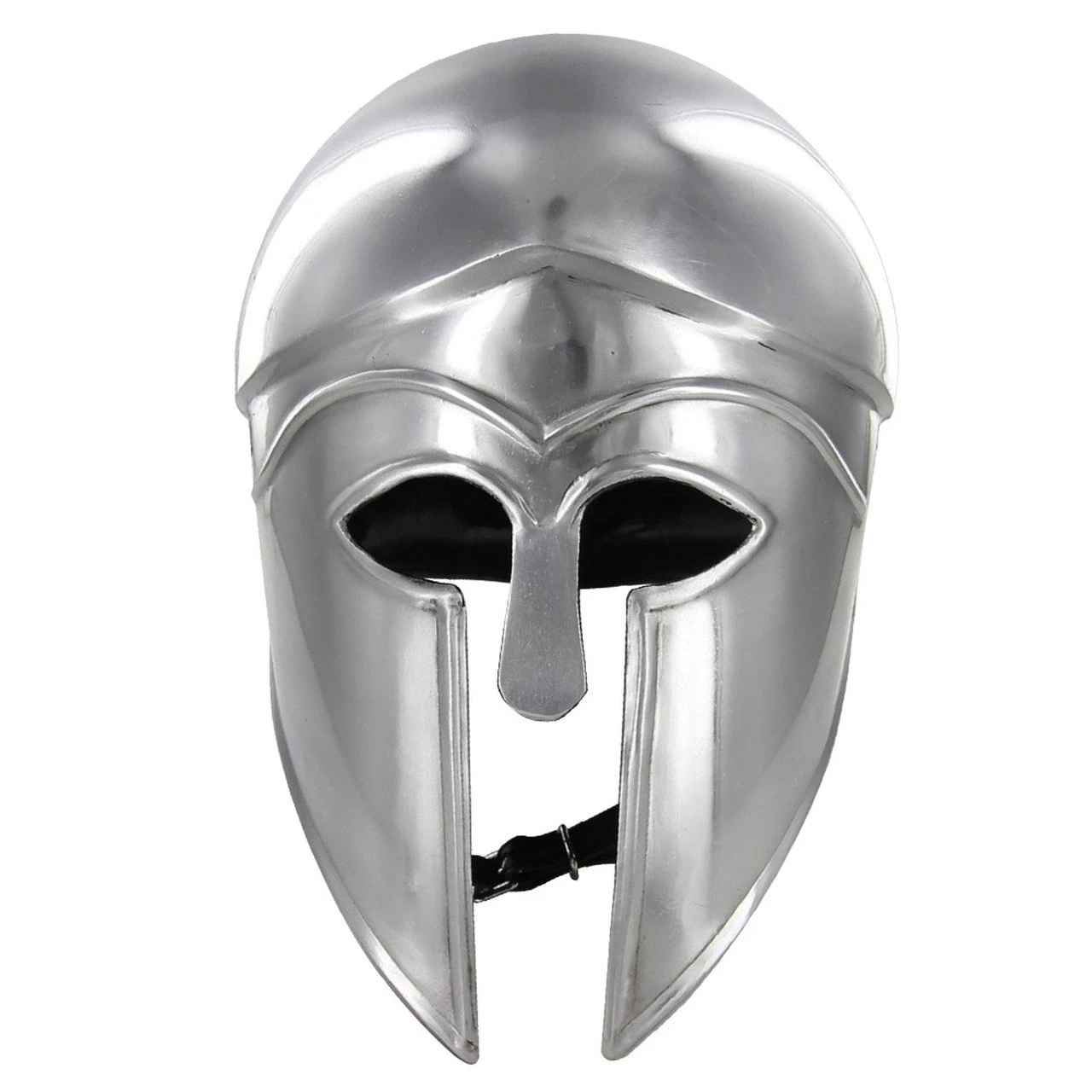 The impeccable detailing while simple gives this piece that something extra. The sides have cutouts for the ears making it easier to hear commands while in phalanx formation. A soft leather suspension liner with an adjustable strap and buckle is featured inside for comfort. This helmet safe guards the top of the head, cheeks and neck. Constructed of 16 gauge steel and polished up nicely this helmet will put the finishing touch on any period or re-enactment costume.