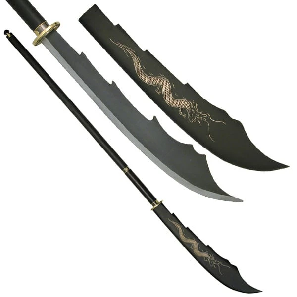 63.25 Inch Overall Length Oriental Fantasy Naginata Sword. Stainless Steel Blade. Naginata With Black Traditional War Blade. Black Handle