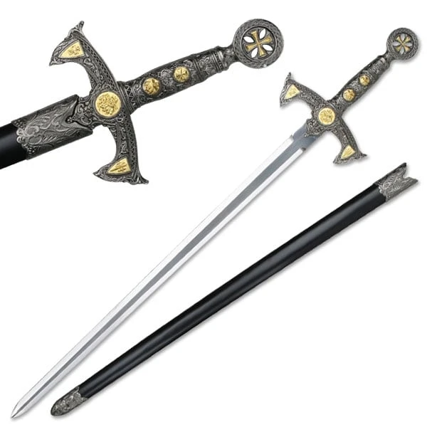 40″ Overall Length Knight’s Templar Medieval Sword with Stainless Steel Blade. Cast Metal Furnishing on Handle. Includes Scabbard with Cast Metal Furnishings