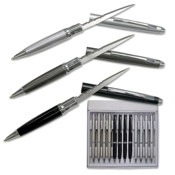 3 Inch Blade Length 12 Piece Box Set Pen Knives or Letter Opener Black, Silver & Grey Color.